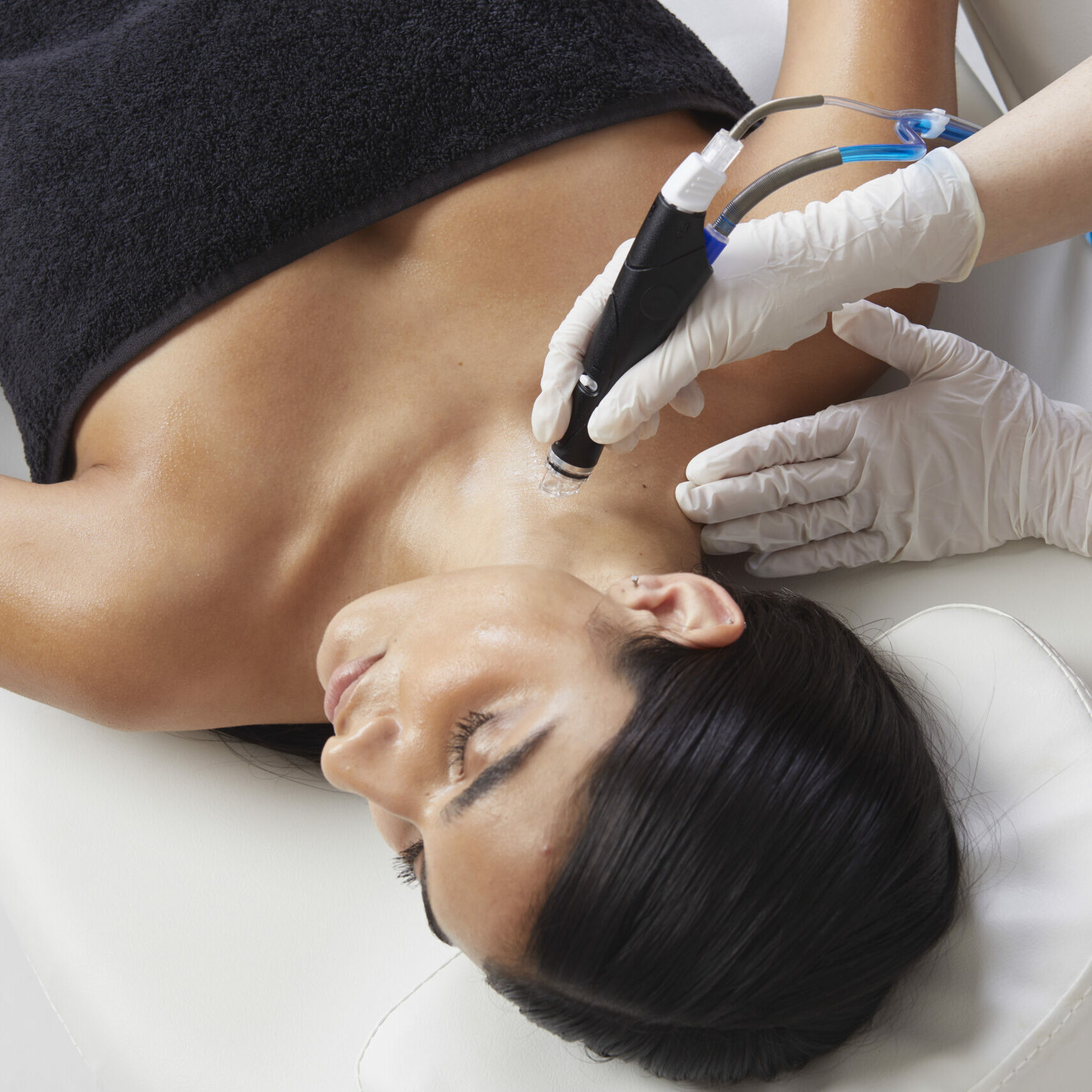 Hydrafacial® ist eine hochwertige Hautbehandlung, die darauf abzielt, die Haut zum Strahlen zu bringen. Das patentierte und innovative Hydrafacial® Syndeo-System kann individuell an die Bedürfnisse Ihrer Haut angepasst werden und so zu Ihrer Hautverbesserung beitragen.